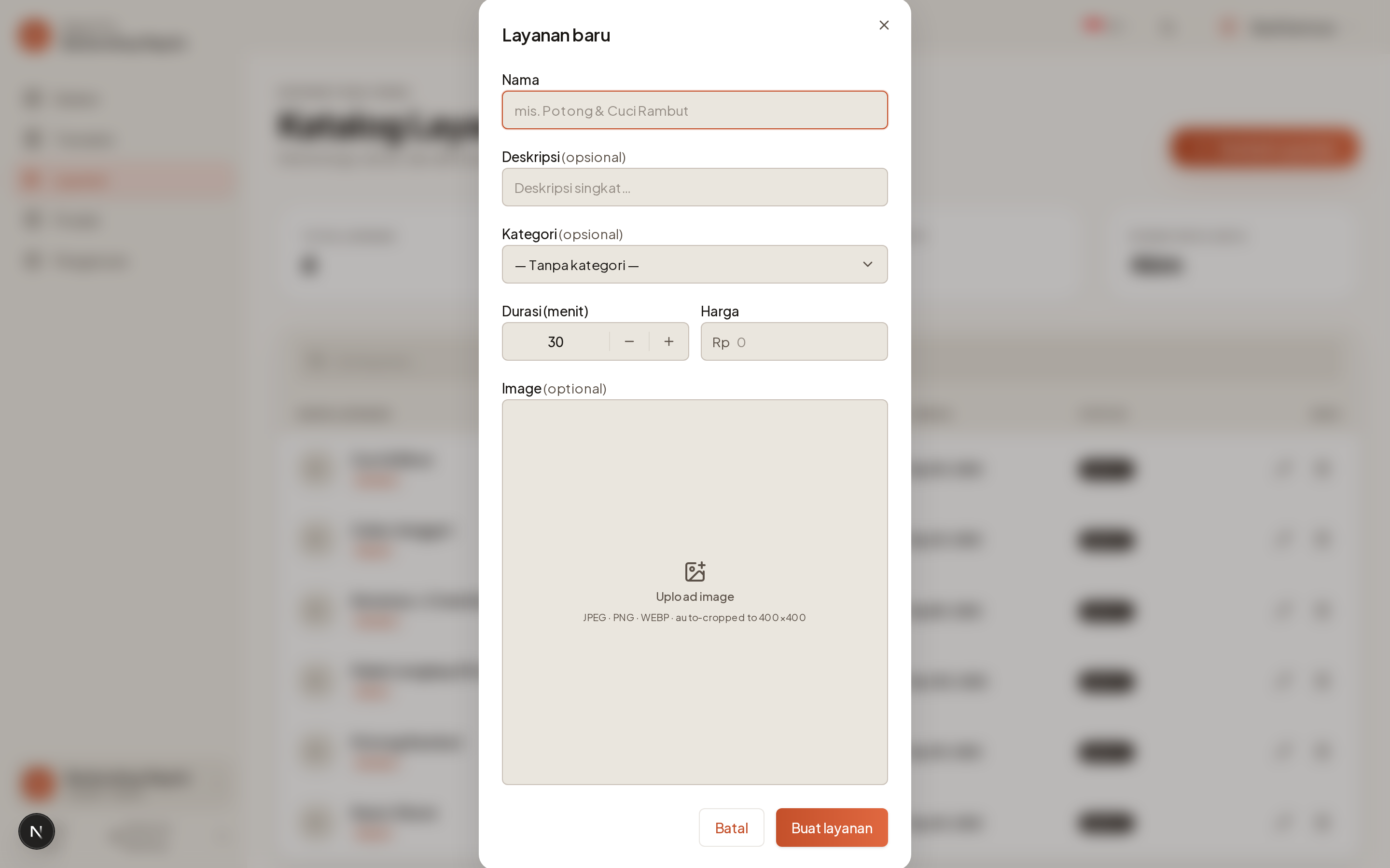- Nama Layanan — nama yang akan tampil ke pelanggan dan staff